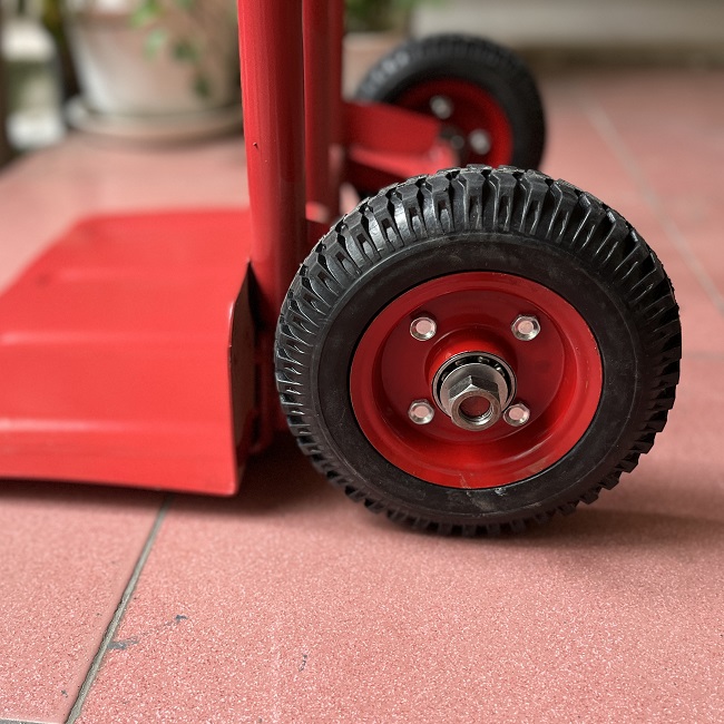 - Bánh xe lớn, từ thép đúc, đường kính tới 20cm, phù hợp với di chuyển trên mọi địa hình.